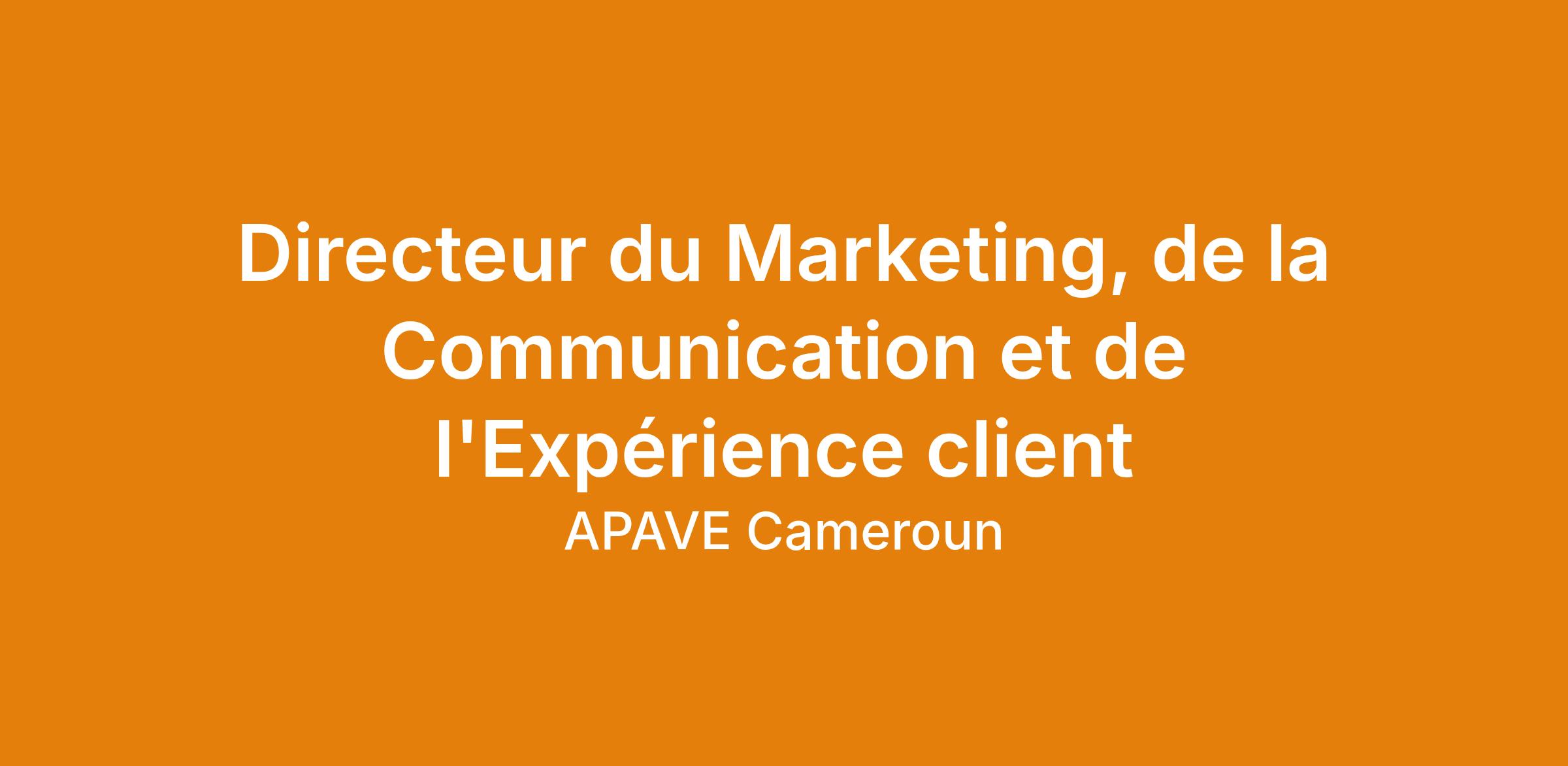 DescriptionApave Cameroun recrute pour le compte d'un de ses clients du secteur bancaire un Directeur du Marketing, de la Communication et de l'Expérience Client