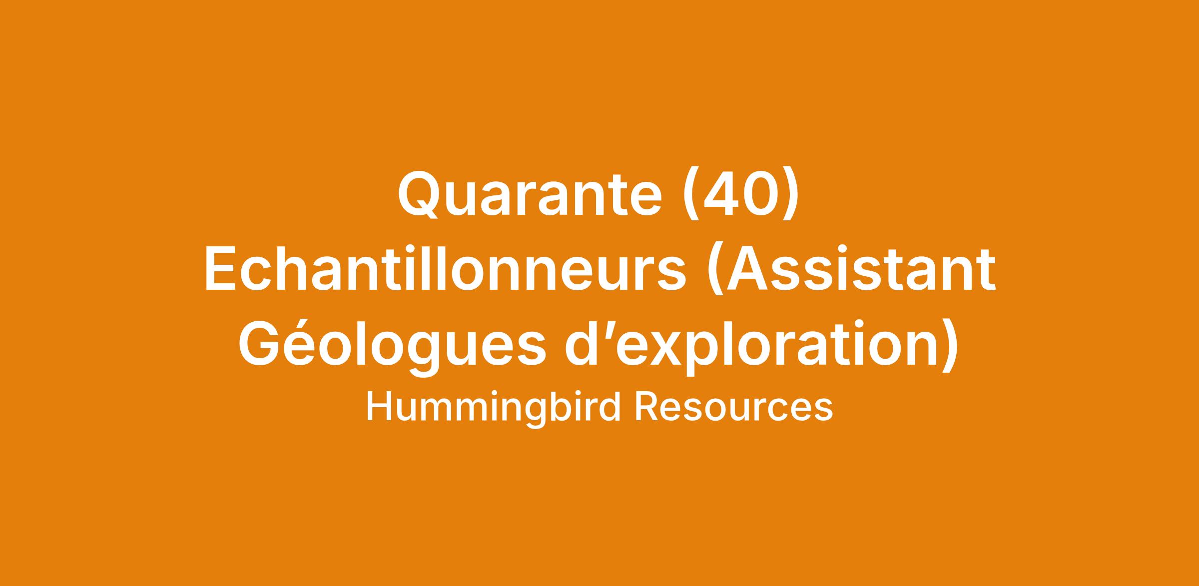 Quarante (40) Echantillonneurs (Assistant Géologues d’exploration) (H/F)