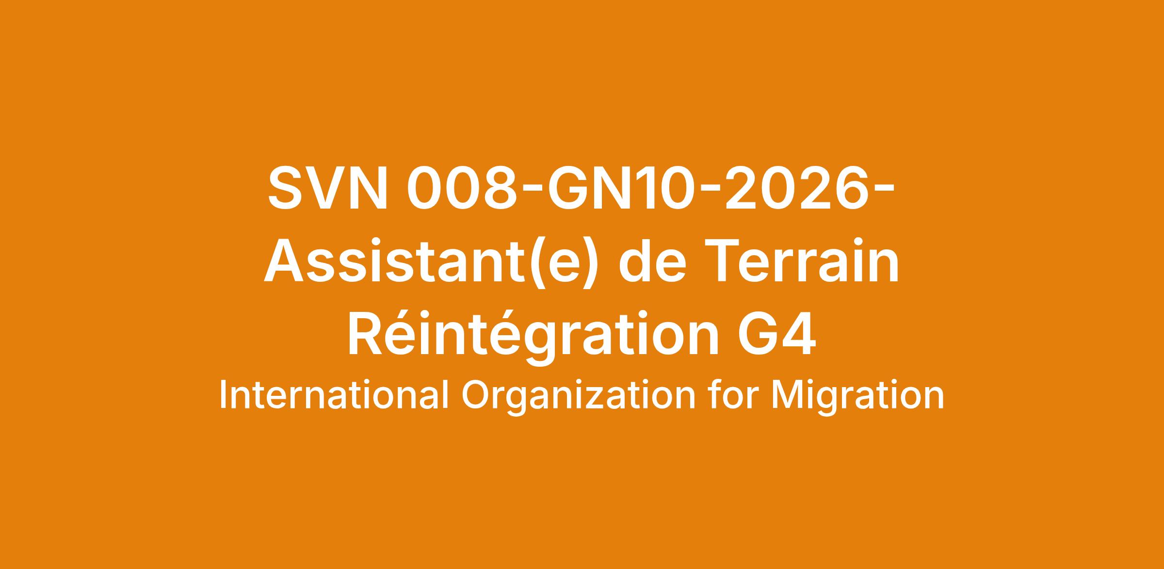 Sous la supervision générale de la Cheffe de Mission et du Chargé de Programme du Projet du Fonds Fiduciaire de l’Union Européenne et sous la supervision directe du National Reintegration Officer, l’Assistant de Terrain Réintégration aura pour tâches et responsabilités de :